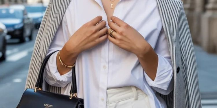Ensure the shirt is well-ironed and fits just right to maintain the outfit’s crisp and elegant appeal, keeping it fresh and modern.
