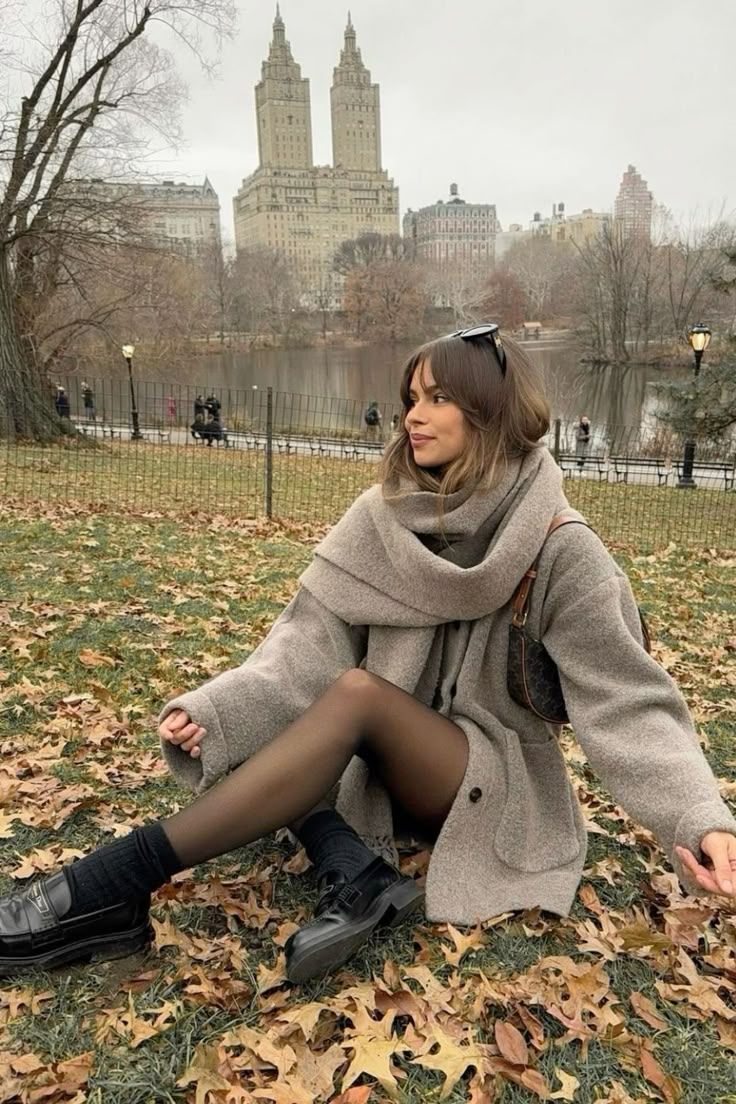I’d love to see a pop of autumn color in this style—perhaps a burgundy lip or a deep red trench for layering. What not to add? A patterned scarf would break the harmony of the monochrome.