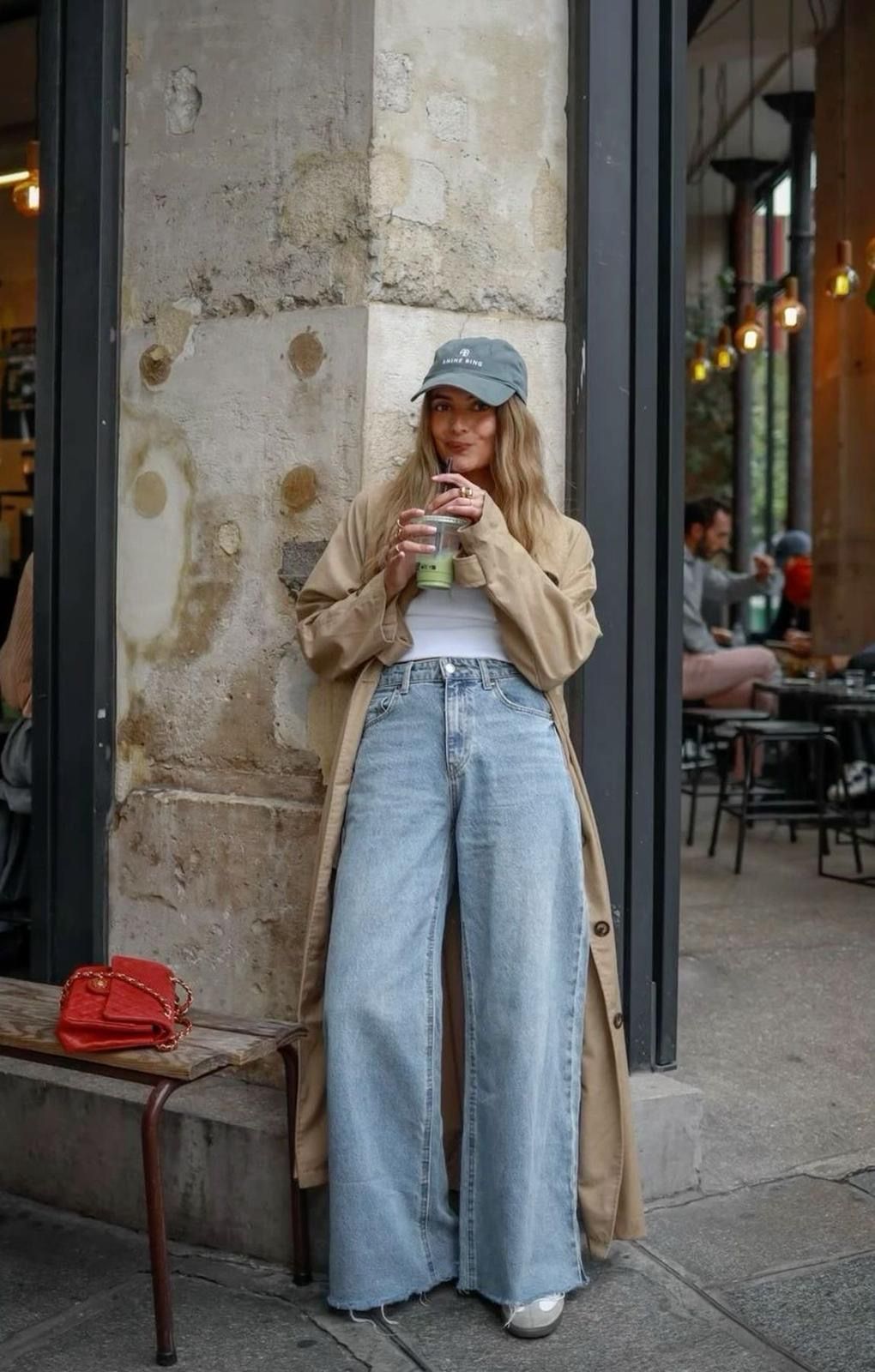 Wide-leg jeans: statement denim, echoing street style women trends.