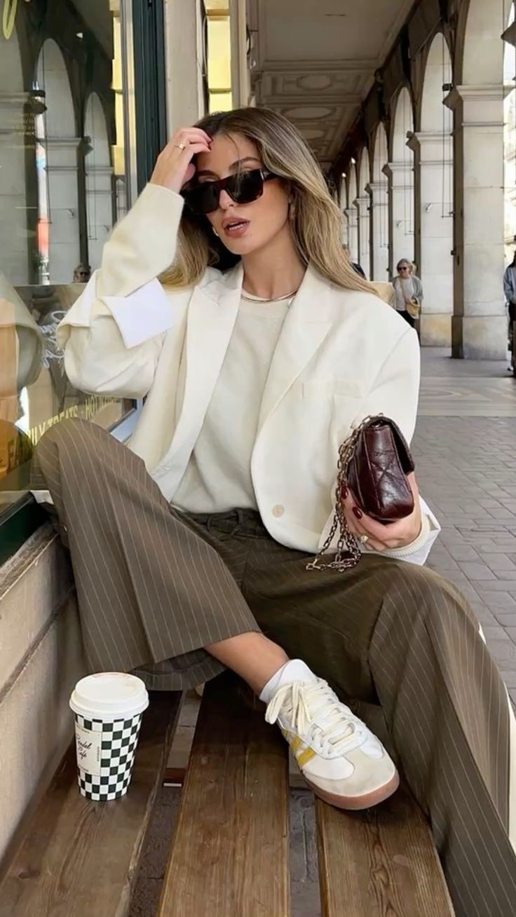 Brown sneakers: a casual yet polished detail, making the look easy to walk through cobblestones.