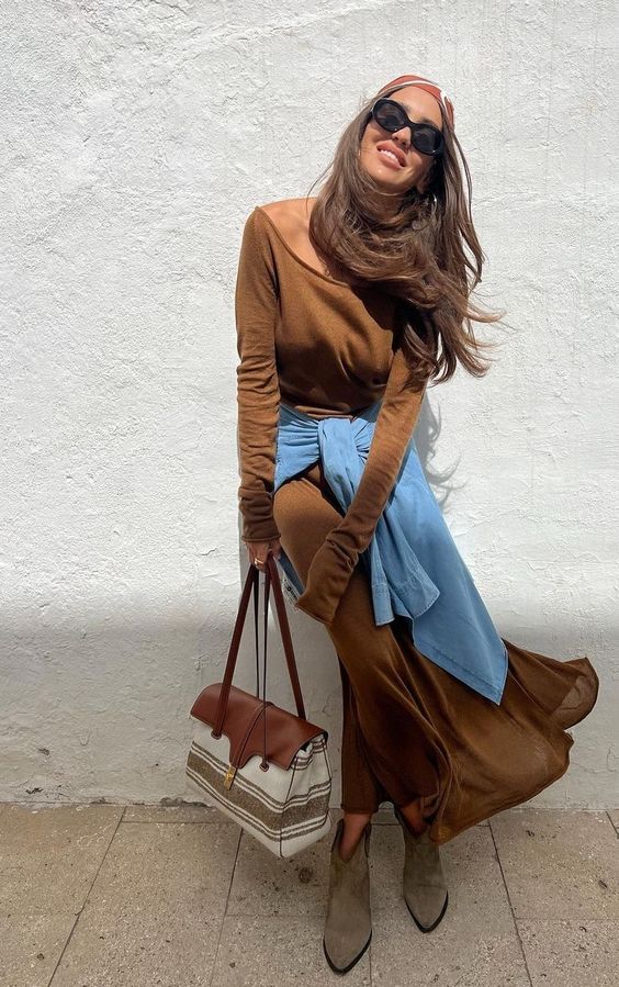 - Brown Maxi Skirt: Provides a flattering, flowy silhouette.