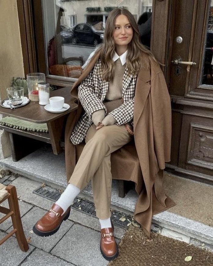 - Shoes: Brown loafers with chunky soles are trendy and practical for walking around the city.