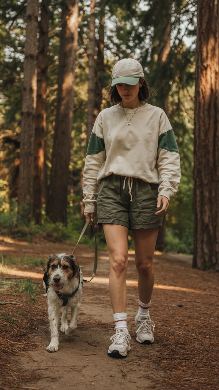 I’d throw in a caramel-toned crossbody bag for trail snacks or a small water bottle, but skip any bright colors. This outfit is all about blending into nature while staying effortlessly put together.