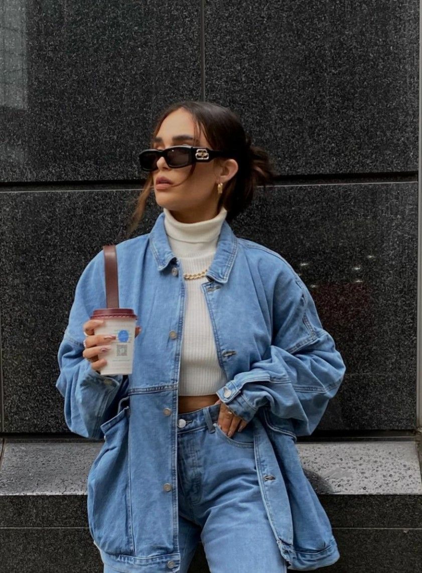 Oversized blue denim jacket: Slouchy, boxy, and utterly cool. It captures the essence of 2025 layering.