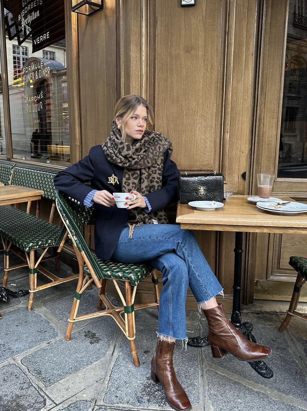 Here we get a city-meets-village aesthetic. The oversized sweater layered over a crisp shirt, tucked into riding boots? It’s equestrian style, upgraded for 2025. This is perfect for cold, drizzly days when you want to feel wrapped up but not drowned in fabric. Flattering for all figures due to the smart layer proportions.