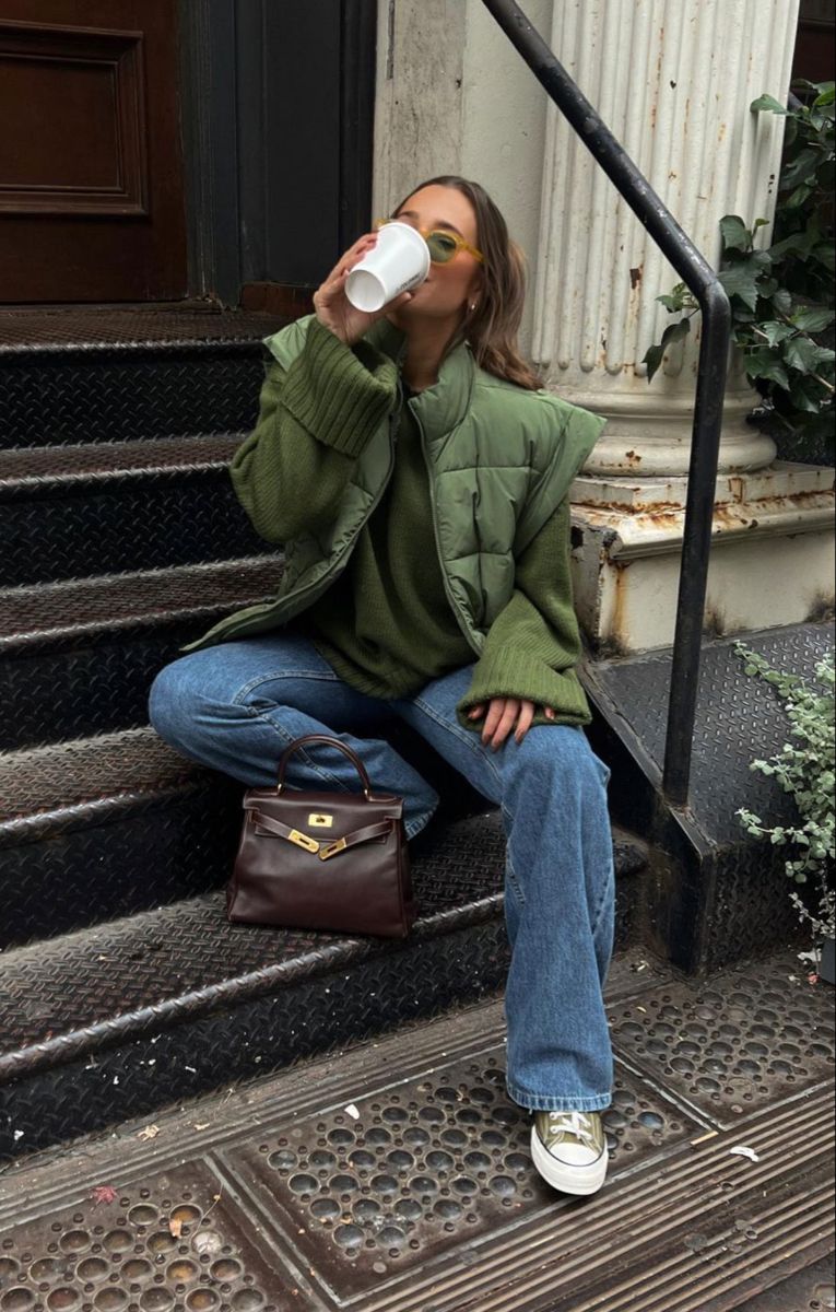 There’s something quintessentially British about this outfit—the kind of thing you’d see in a cozy coffee shop window just before the rain starts to fall. This is peak comfy, casual, and practical. It’s a perfect go-to for those drizzly mornings when your day includes a walk to the station, some grocery errands, or even a quick pop into the work space with a relaxed dress code. The cropped jeans and short quilted jacket are best suited for medium to tall frames, as they visually cut the legs at mid-shin.
