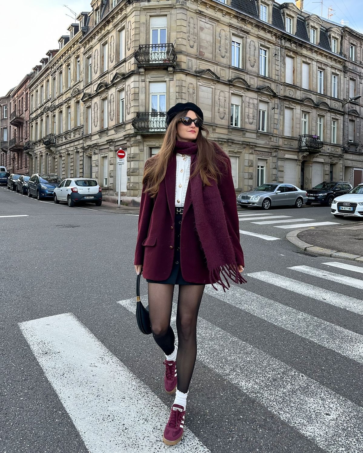 Burgundy beret: Adds mood and color pop—hello, Royale high energy