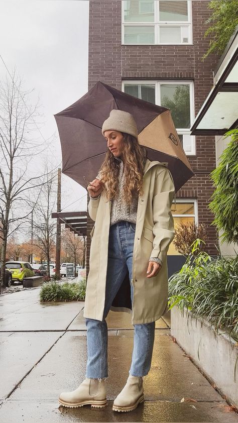 Beige raincoat: Mid-length and ultra-practical, with enough room for cozy layers underneath.