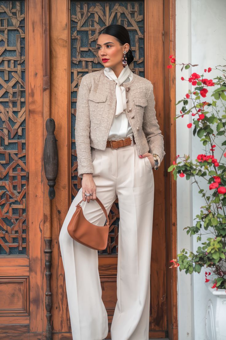 I wouldn’t add extra layers here. The beauty is in restraint. Avoid scarves or oversized totes—they’ll clutter the silhouette and steal from the blazer’s clean lines.