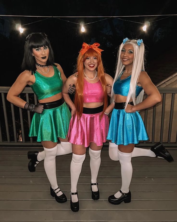 A tropical spin on the classic cartoon trio, this look blends nostalgia with hot-girl summer energy. It’s The Powerpuff Girls, but they’ve had a beach club glow-up—and we’re here for it. These outfits work beautifully on toned or curvy bodies, and are totally dance-floor or boardwalk ready. More daytime party than spooky night out, but still iconic enough to steal attention at any Halloween gathering.