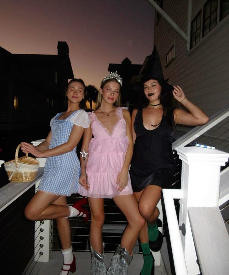 This dreamy costume set dives headfirst into the fantasy realm with a trio straight out of The Wizard of Oz. It’s giving Princess, villain, and heroine energy all in one frame. The aesthetic leans vintage theatrical, which means it works wonders for romantic silhouettes—think pear or hourglass shapes. It’s not a super practical costume for long walks or outdoor haunts, but it’s red carpet ready for themed parties, indoor soirées, or Halloween brunch events.