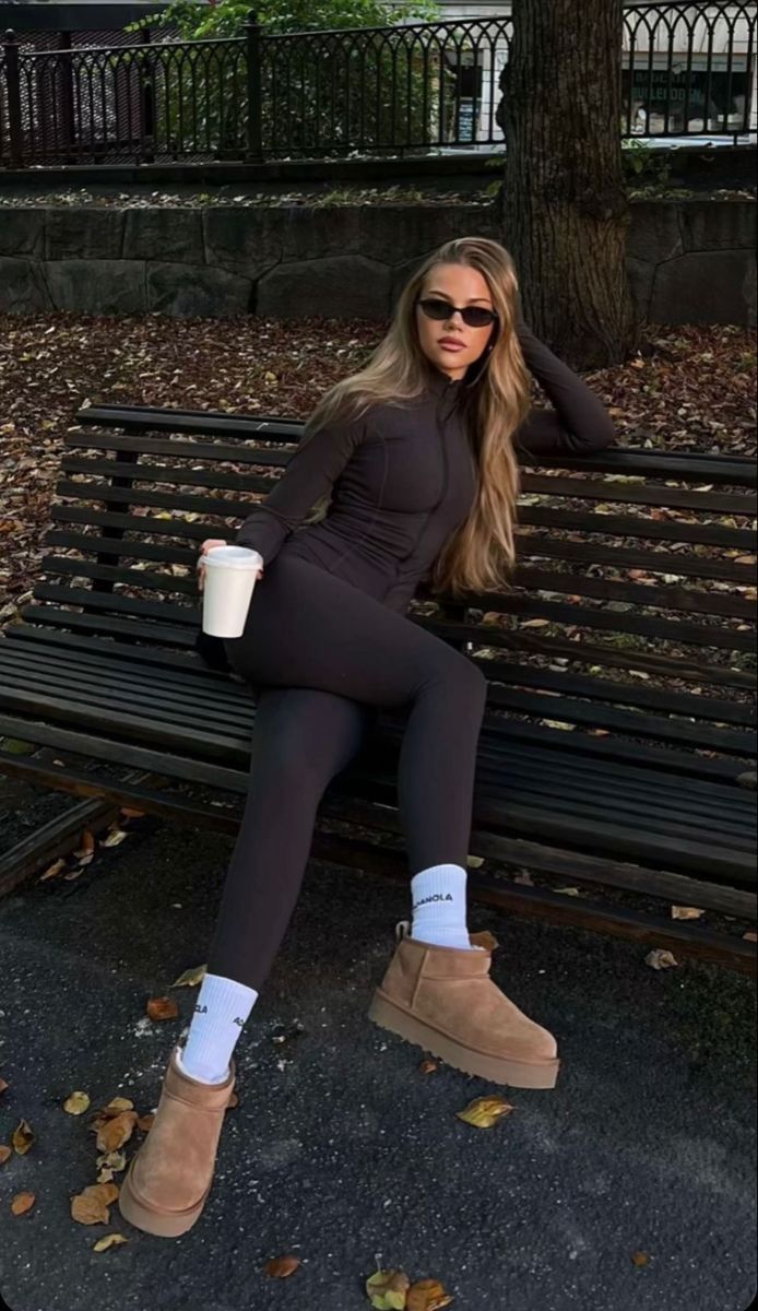 Short brown Uggs: Effortlessly cool, keeping the look casual yet chic.
