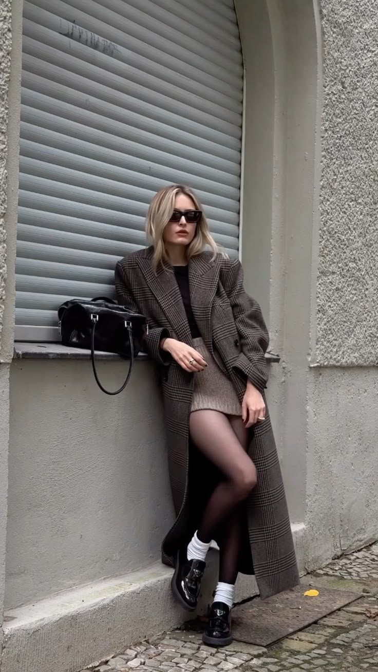 This look is perfect for school, daytime birthdays, or teens wanting a polished yet women casual vibe. The long plaid coat over a mini skirt feels cute and approachable, with a subtle aesthetic edge. It’s practical, comfortable, and still stylish.