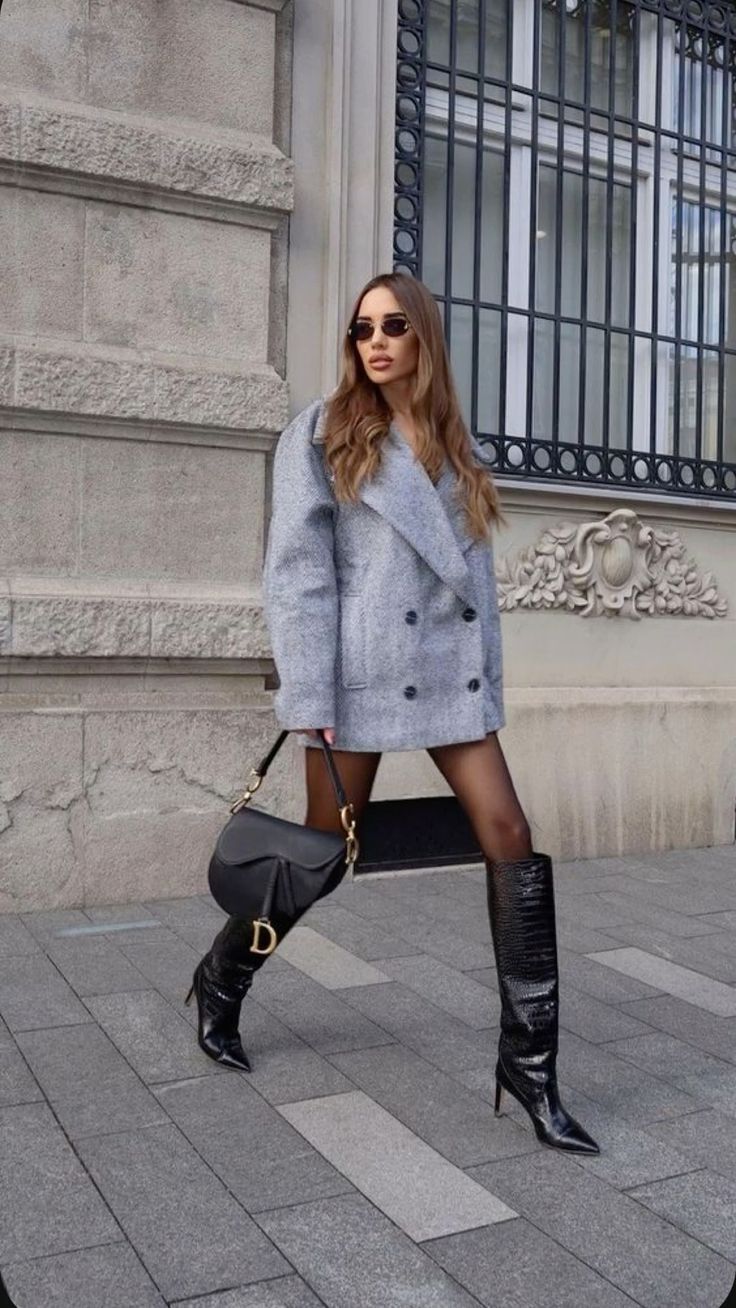 There’s something timeless about an oversized grey coat styled as a mini dress. The structured cut keeps it classy while the short hemline gives it a bold, baddie twist—ideal for a 20th birthday dinner or rooftop photoshoot. This outfit works beautifully on taller women, since the longline silhouette elongates the legs, especially when paired with thigh-high or knee-high boots. It may not be the most women modest choice, but for a party with friends, it sets the perfect balance of simple yet powerful.