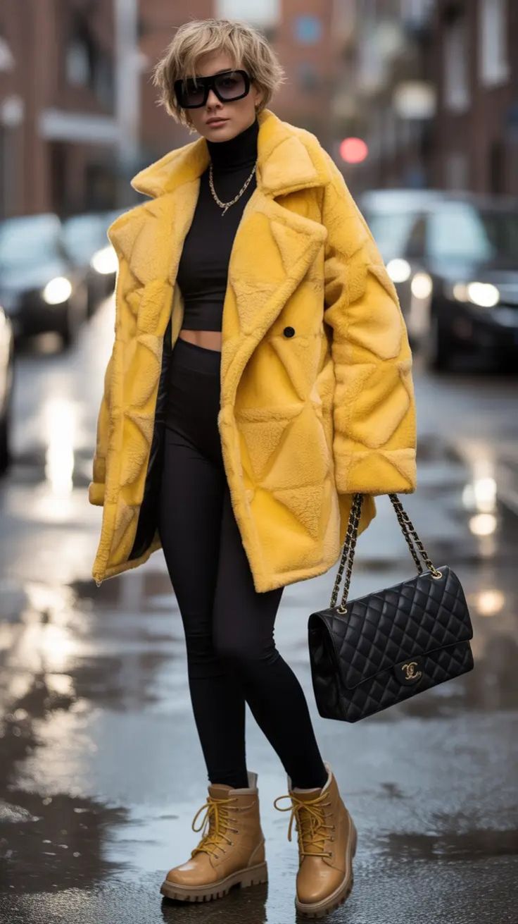 Oversized Coat: The coat brings a bold but wearable statement, especially ideal for those who want a light splash of sunshine without going full neon.